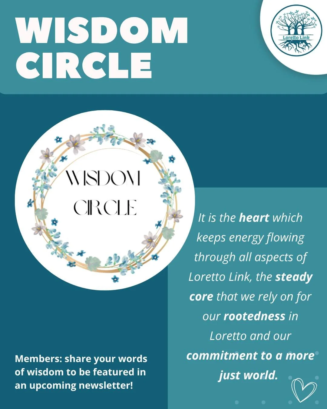 Loretto Link is grounded in the principles of democratic member participation. We carry out our mission through member-formed working groups. We meet annually to review the well-being and growth of our organization, and we have other gatherings throughout the year. We seek to develop a supportive community which encourages creative action for peace and justice locally and globally.